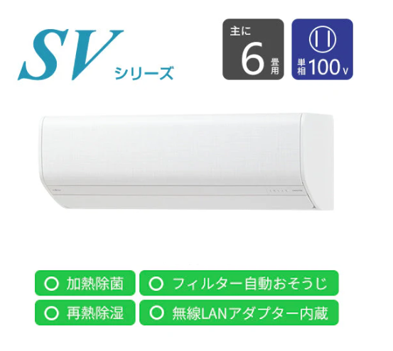 一般的なエアコンの横幅は800mm前後ですが、例えば富士通ゼネラルの「nocria(ノクリア)」SVシリーズなどは横幅698mmと非常にスリムに設計されています。